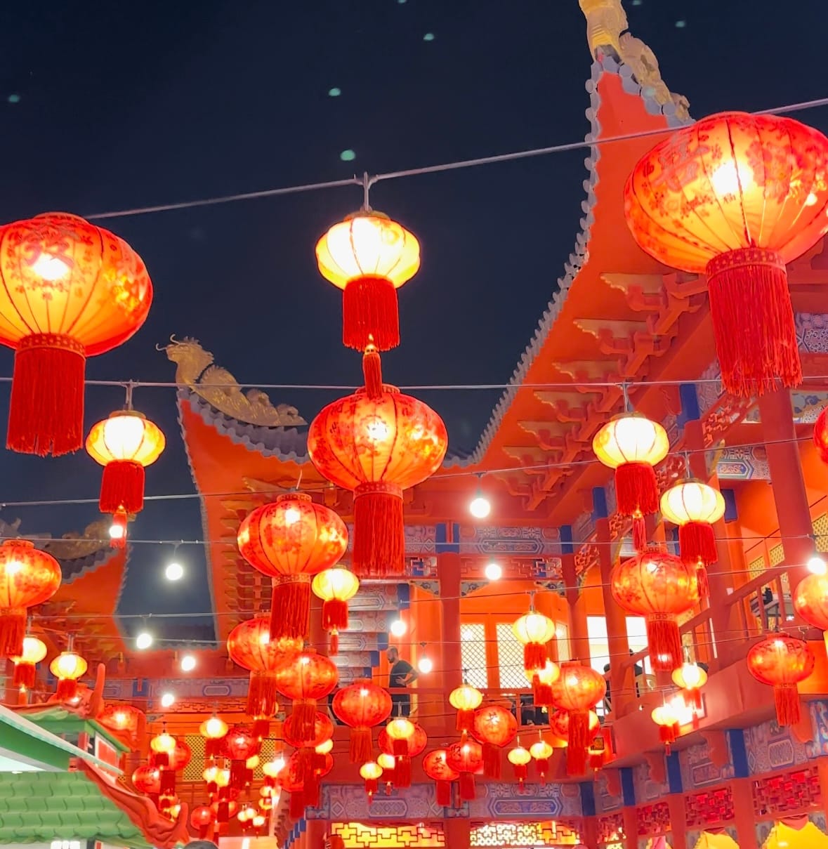 The red lanterns overseeing the Chinese markets were a dream to look up at – (See below).